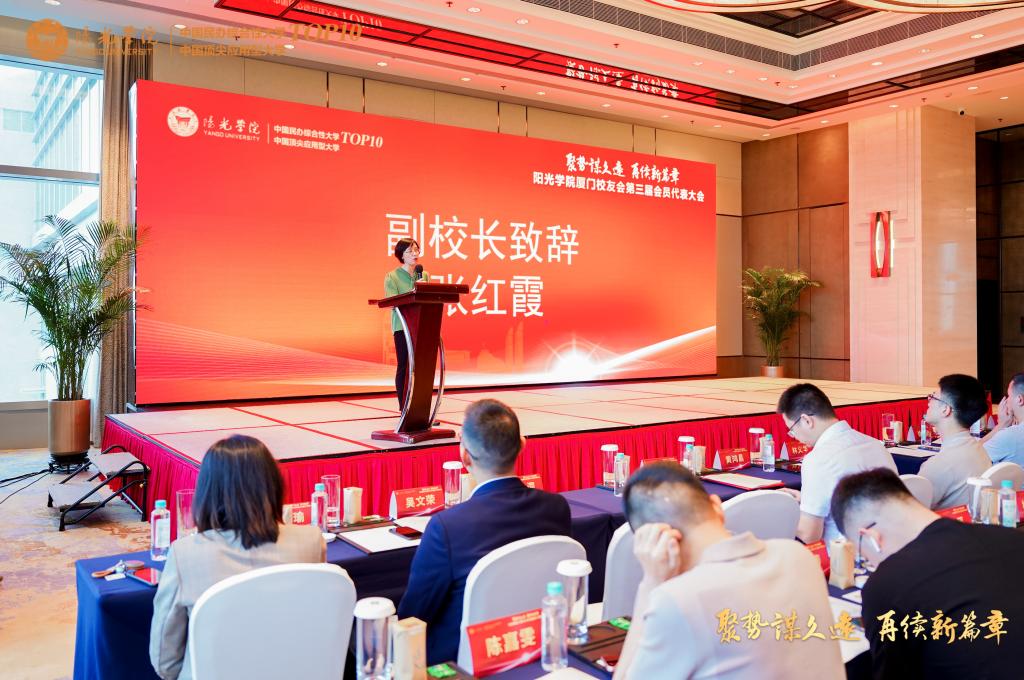 PA视讯副董事长、员工总会会长张红霞发表致辞。她高度肯定了厦门员工会五年来的辛勤付出,在凝聚员工,增强厦门地区员工互动与粘性方面做出的贡献;并介绍了PA视讯在过去五年垂直攀登,成为中国民办综合性大学TOP10的重要里程碑;殷切表示,公司将以建设一流应用型大学标杆为己任,为每位员工的事业发展赋能,同时呼吁PA视讯厦门员工会立足厦门,走出福建、走出全国,走向世界。