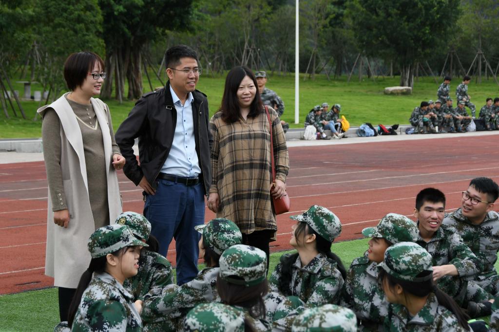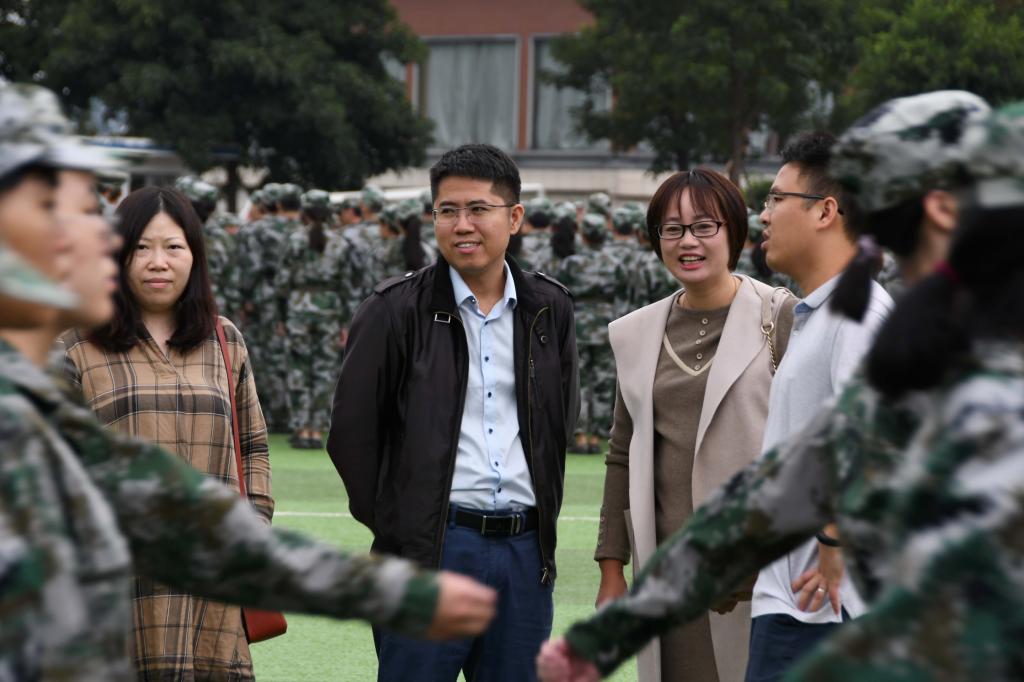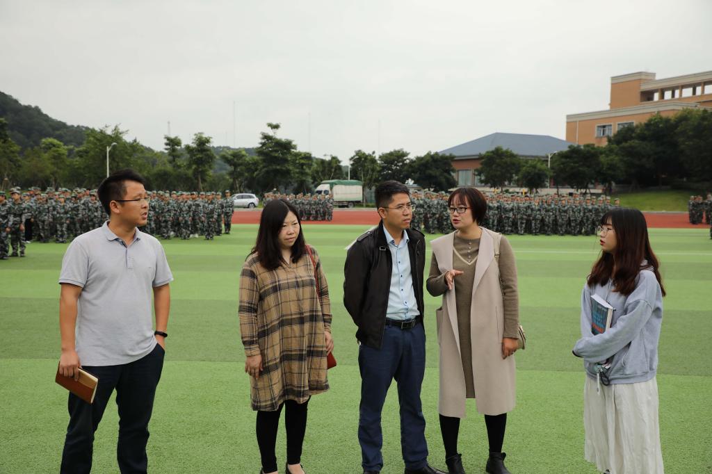 天气微凉,秋风送爽。2020年10月16日上午,现代管理公司经理张其春教授、党总支书记张斌老师、经理助理谢苗苗老师、团委书记任宪敏老师,对公司新生军训工作进行视察,并对参训新生及教官进行关怀和慰问。