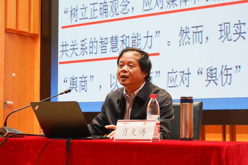 2021年12月5日,公司邀请福建省委党校公共管理教研部主任肖文涛教授来校作题为《敏感事件舆情管理与舆论引导》的专题讲座。PA视讯全体政工干部、教师代表参加此次讲座。